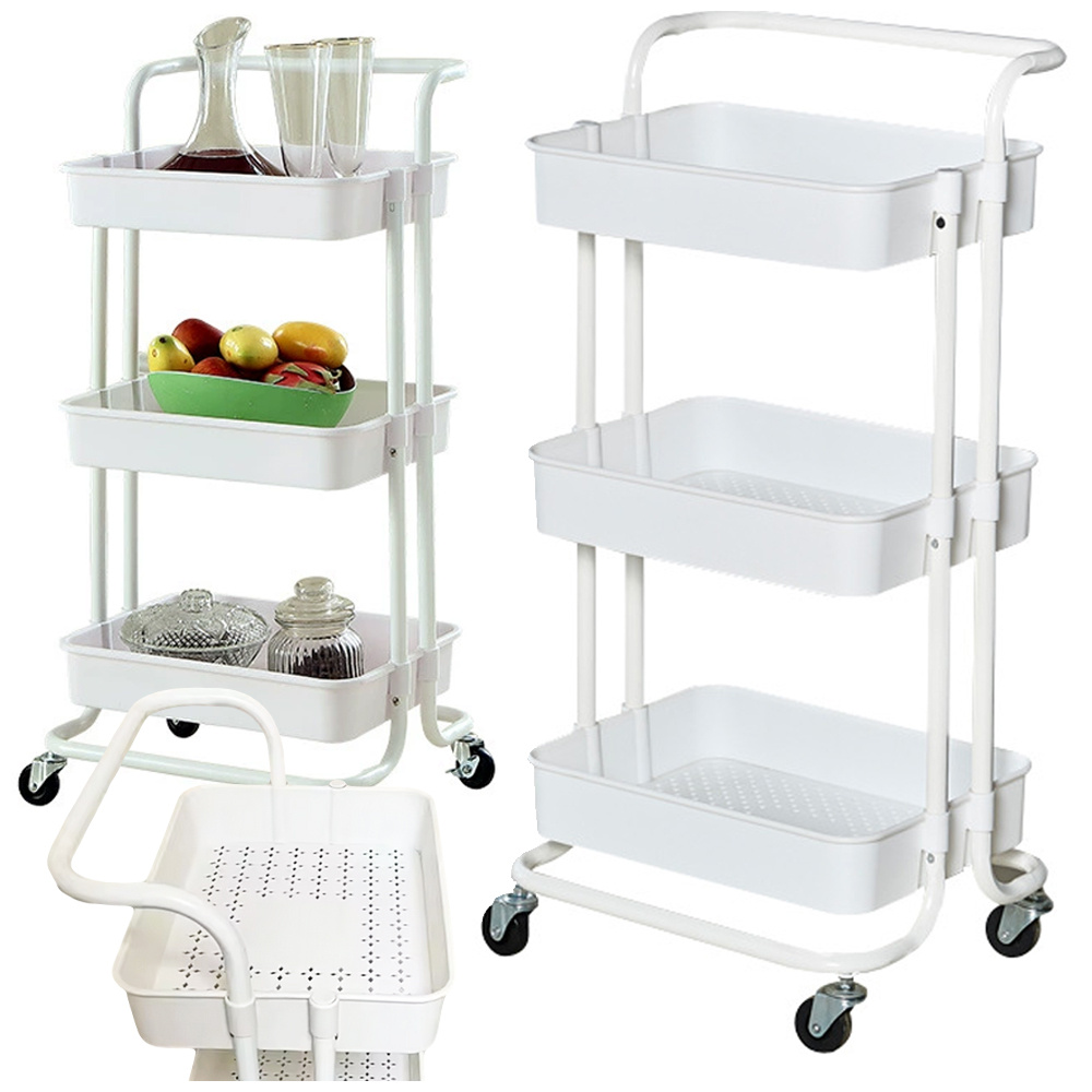 Półka łazienkowa szafka kuchenna regał mobilny na kółkach 3 poziomy biała