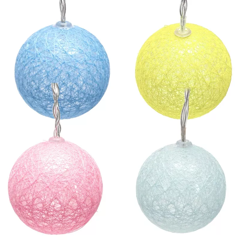 Stwórz magiczną atmosferę w swoim domu dzięki tej eleganckiej girlandzie z bawełnianych kul. Te 10 jasnych lampek LED o średnicy 6cm każda, rozłożonych na 2-metrowym przewodzie, zapewnią ciepłe, romantyczne oświetlenie w każdym pomieszczeniu.