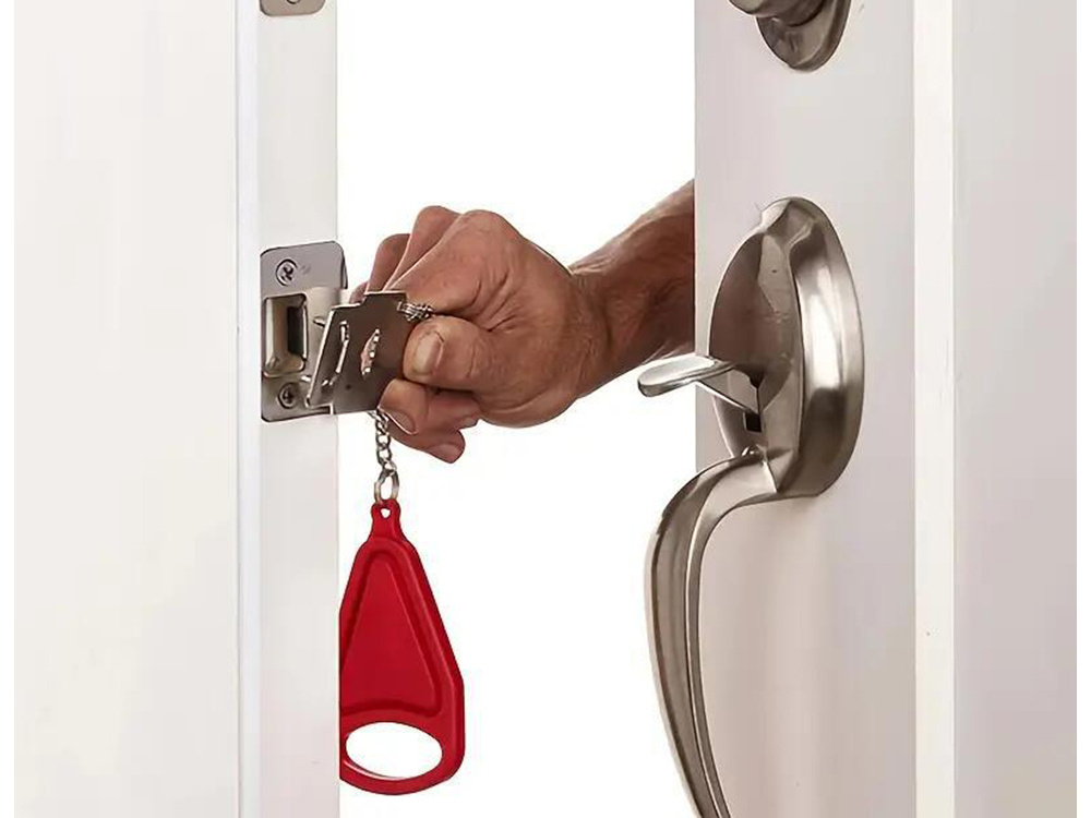 Nasza blokada drzwi jest łatwa w montażu i demontażu, dzięki czemu możesz szybko zabezpieczyć swoje drzwi podczas podróży. Wystarczy umieścić blokadę na krawędzi drzwi i zamknąć je, aby zapewnić sobie spokój i bezpieczeństwo.