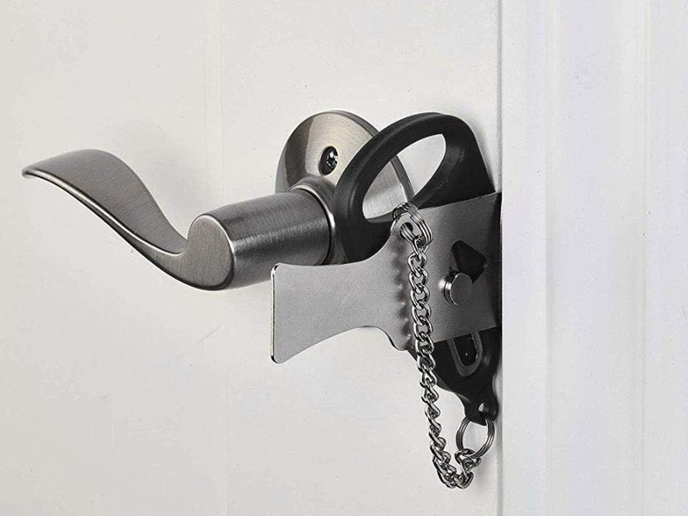 Nasza blokada drzwi została zaprojektowana z myślą o uniwersalnym zastosowaniu, dzięki czemu pasuje do wielu rodzajów drzwi, od standardowych. Teraz możesz mieć pewność, że zabezpieczysz swoje drzwi niezależnie od miejsca, w którym się znajdujesz.