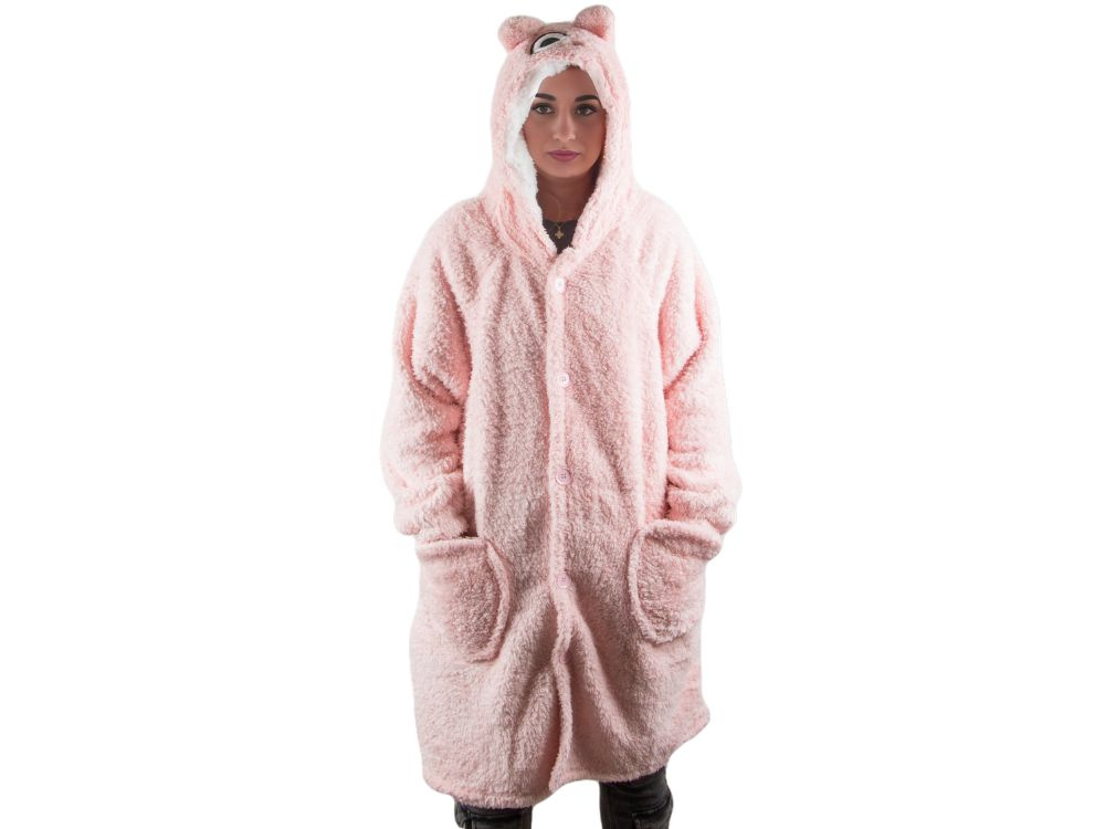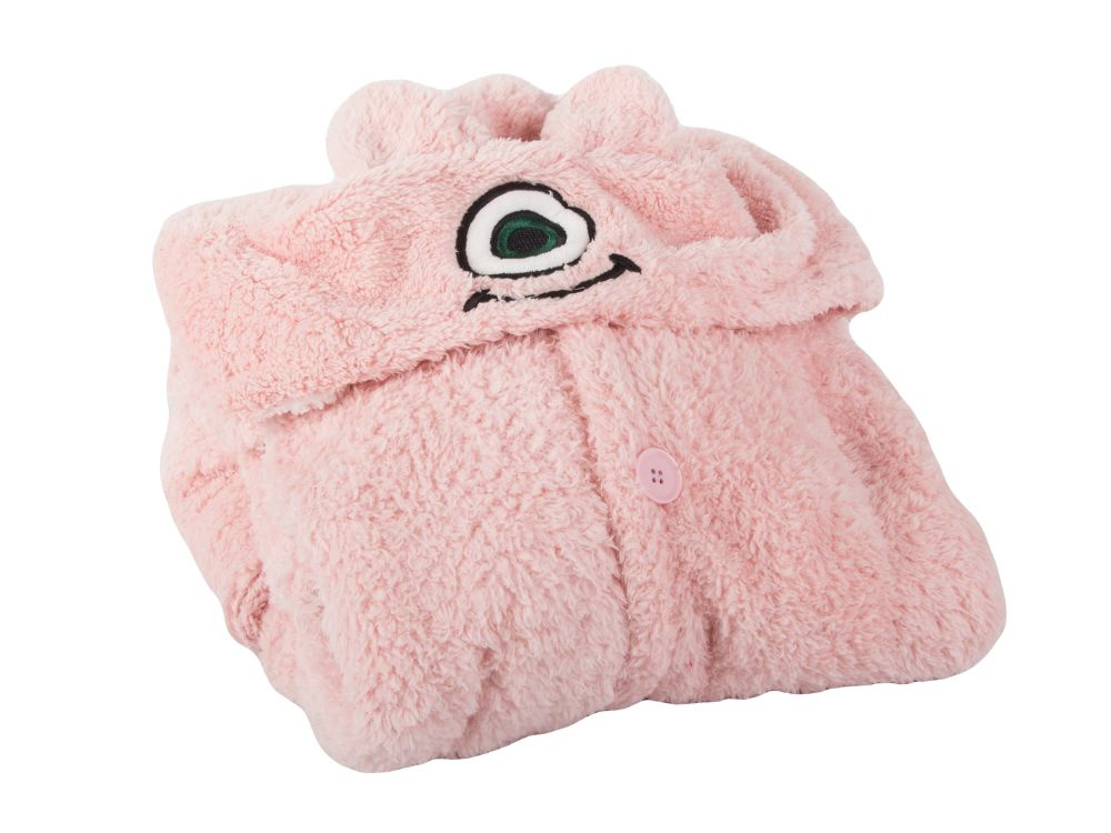 Ciepła bluza koc, miękki produkt o funkcjonalności szlafroka i koca jednocześnie. Wykonana z ciepłego materiału, idealnie sprawdza się na chłodne dni, otulając całe ciało. Posiada kaptur, na którym znajduje się jedno oko, nadając bluzie zabawny, potworny charakter.