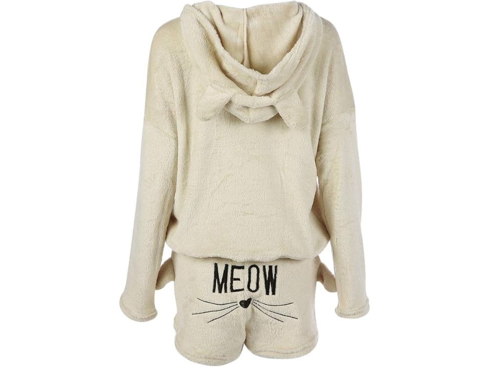 Ciepła piżama w kolorze beżowym, rozmiar M, składa się z kompletu z długim rękawem i krótkimi spodenkami. Wykonana z miękkiego, przyjemnego w dotyku materiału, zapewnia komfort podczas snu, szczególnie w chłodniejsze noce.