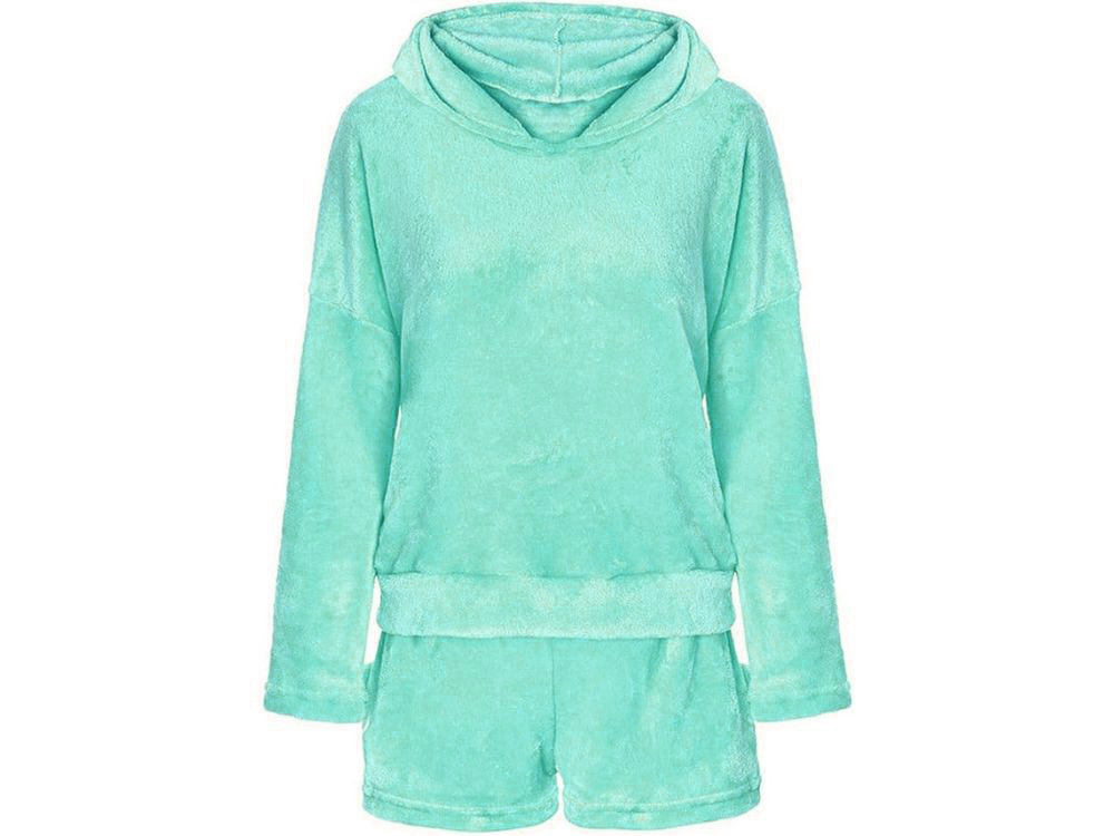 Zapewnij sobie wyjątkowy komfort i ciepło podczas chłodnych dni dzięki tej miękkiej, dwuczęściowej piżamie z kapturem. Idealna do relaksu w domu, łączy w sobie funkcjonalność i styl, gwarantując wygodę na najwyższym poziomie.