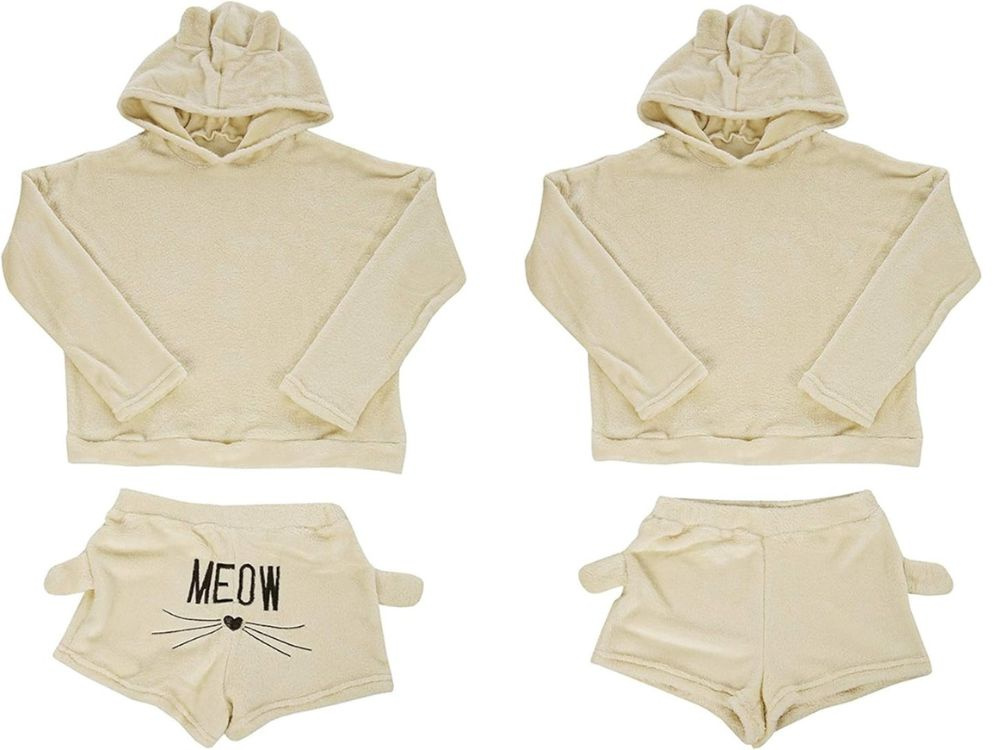 Ciepła piżama w kolorze beżowa, rozmiar XL, składa się z kompletu z długim rękawem i krótkimi spodenkami. Wykonana z miękkiego, przyjemnego w dotyku materiału, zapewnia komfort podczas snu, szczególnie w chłodniejsze noce.