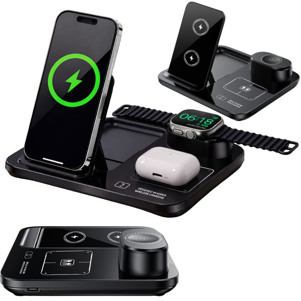 Szybka ładowarka indukcyjna bezprzewodowa 3w1 do zegarka telefonu słuchawek