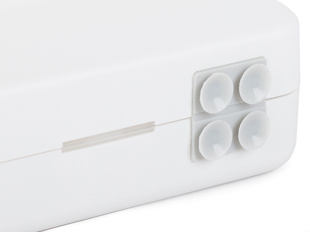 Dozownik wyposażony jest w silikonowe przylepce, dzięki którym można go przyczepić w dowolnym miejscu w kuchni.