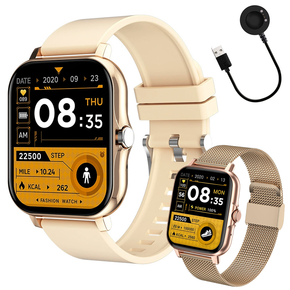 Smartwatch zegarek damski męski gumowy pasek sport bluetooth rozmowy złoty
