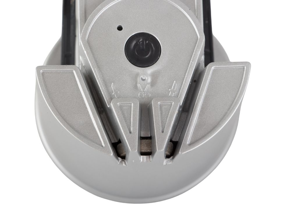 Ostrzałka została wyposażona w system elektryczny, który automatycznie napędza elementy ostrzące. Dzięki temu nie musisz używać siły – wystarczy włożyć ostrze do prowadnicy i przesunąć je wzdłuż tarczy ostrzącej. Urządzenie zapewnia szybkie i równomierne naostrzenie, które znacząco poprawia komfort krojenia i przedłuża żywotność noży i nożyczek.