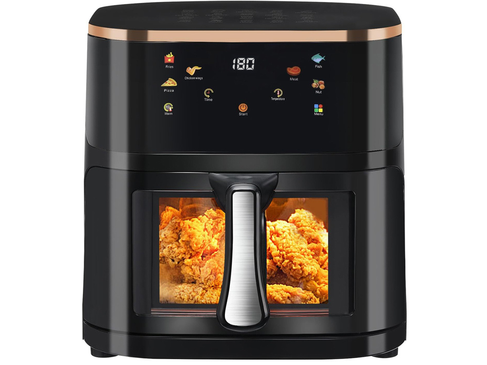 Urządzenie posiada okno, które umożliwia monitorowanie przygotowywanych potraw bez konieczności otwierania frytkownicy, które powoduje utratę ciepła i wpływa na efektywność procesu. Możemy również łatwo uniknąć przypalenia potraw i śledzić stan przygotowywanych potraw.