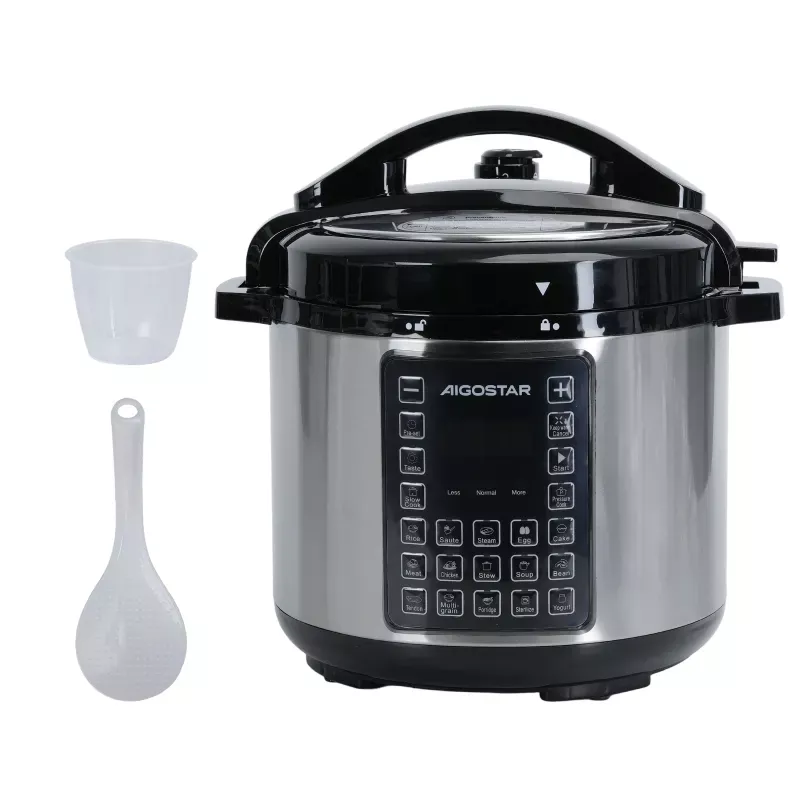 Ten elektryczny garnek umożliwia nie tylko gotowanie, ale także duszenie, gotowanie na parze oraz szybkie gotowanie pod ciśnieniem. Dzięki temu możesz przygotować pełnowartościowe dania, od zup i gulaszy, po warzywa na parze i ryż, bez potrzeby używania wielu osobnych naczyń.