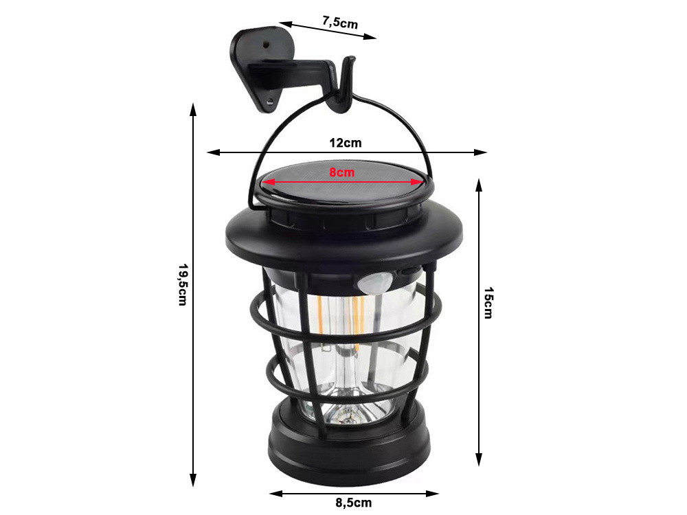 ✅ Wysokość klosza z panelem słonecznym: 15cm
