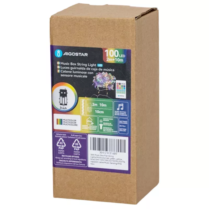Odkryj magię świąt z tymi wyjątkowymi lampkami choinkowymi, które łączą piękne oświetlenie z funkcją odtwarzania muzyki. 100 diod LED w kolorach czerwonym, zielonym, niebieskim i ciepłym białym tworzy spektakularną atmosferę, idealną dla każdej okazji.