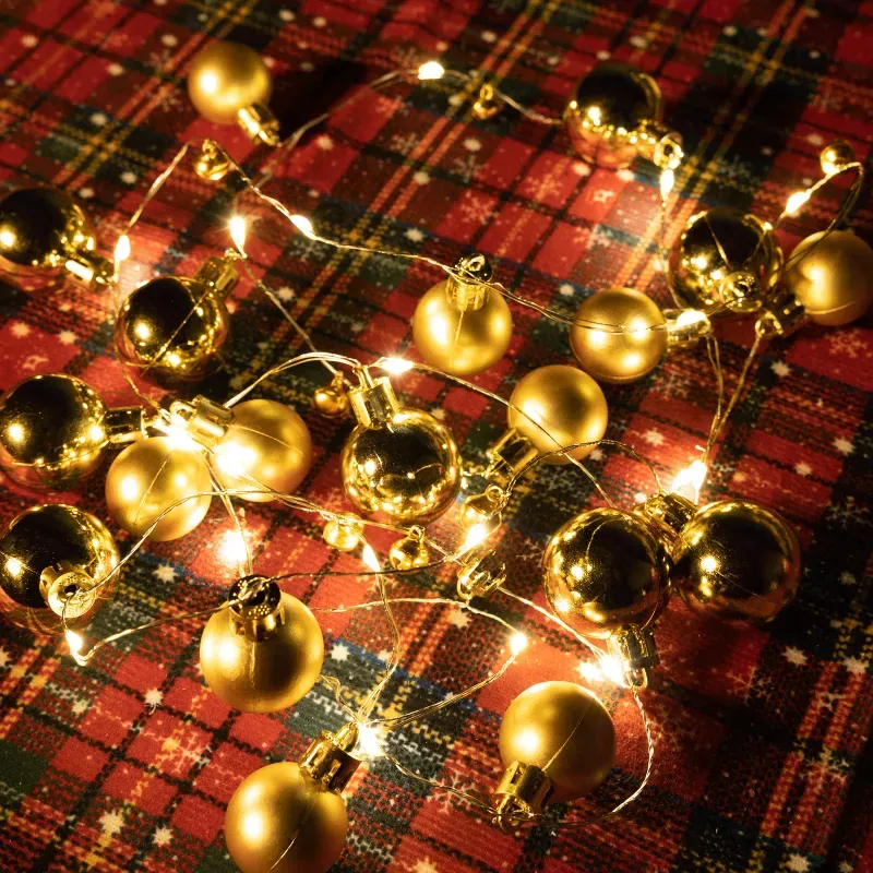 Stwórz magiczną atmosferę świąt dzięki tym wyjątkowym lampkom choinkowym z eleganckimi złotymi bombkami. Ten kompletny zestaw dekoracyjny łączy w sobie 20 ciepłych diod LED z 20 pięknymi złotymi kulkami w dwóch rozmiarach, tworząc harmonijną kompozycję idealną na każdą okazję.