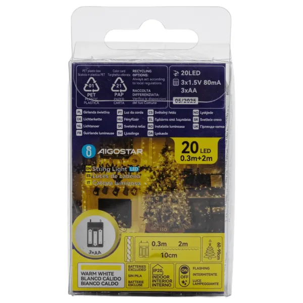 • 20 diod LED rozmieszczonych co 10 cm na 2-metrowym przewodzie • Zasilanie bateryjne - 3 baterie AA zapewniają pełną mobilność • Ciepłe, białe światło tworzy przytulną atmosferę • Przezroczysty przewód - dyskretny i elegancki • Klasa IP20 - bezpieczne użytkowanie wewnątrz pomieszczeń • Napięcie DC 4,5V - energooszczędne rozwiązanie