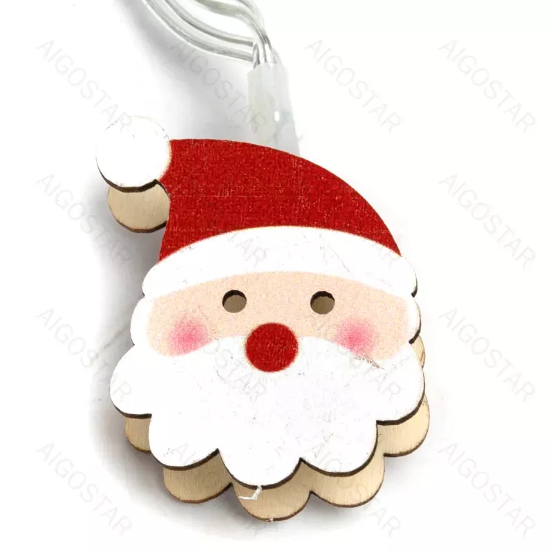Lampki choinkowe 10 LED na 3 baterie AA - drewniana zawieszka Mikołaj ciepła