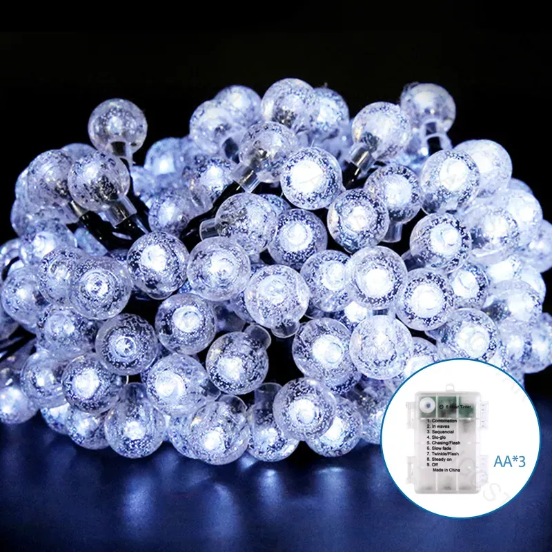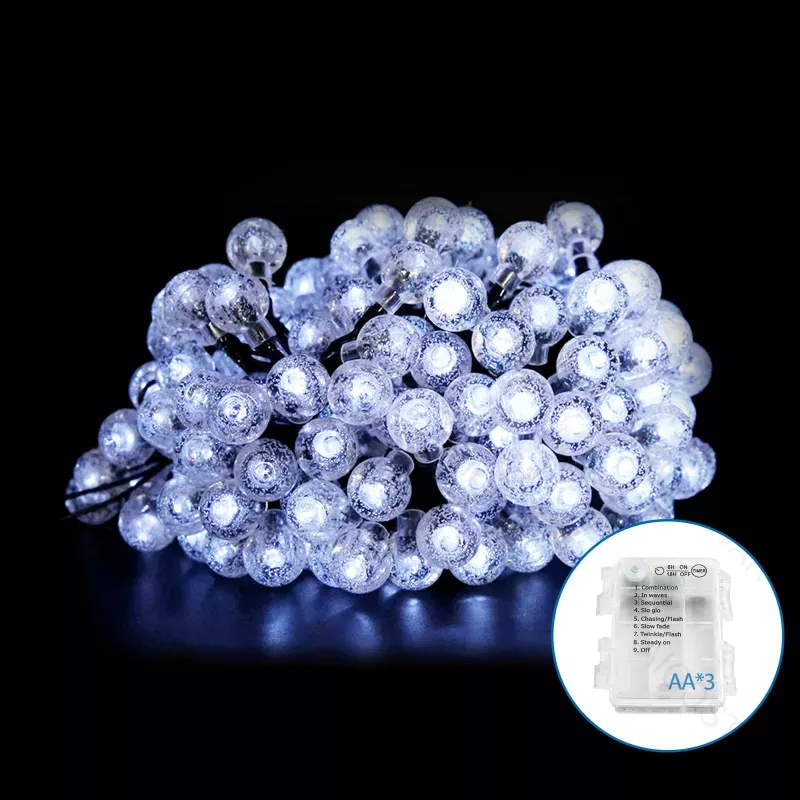 Lampki choinkowe małe kulki 100 LED na 3 baterie AA, Zimna biel, 10 m
