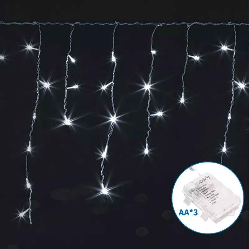 Lampki choinkowe sople przepływ na 3 baterie AA, Zimna biel 300LED 15M