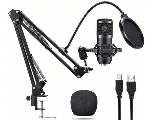 Mikrofon studyjny usb pojemnościowy zestaw statyw pop filtr kardioidalny