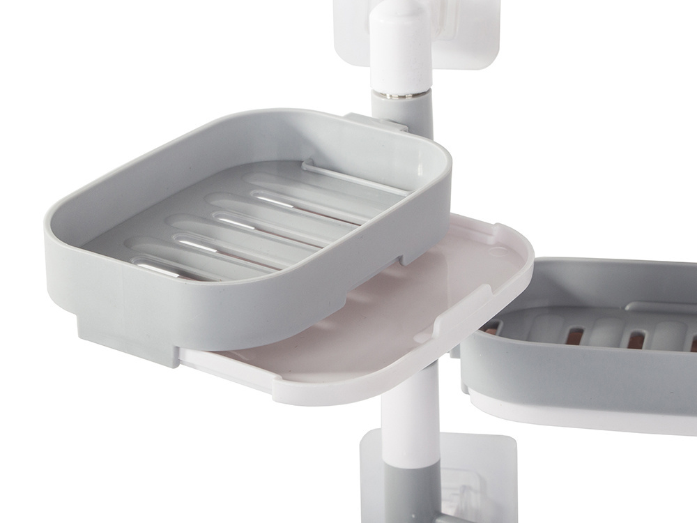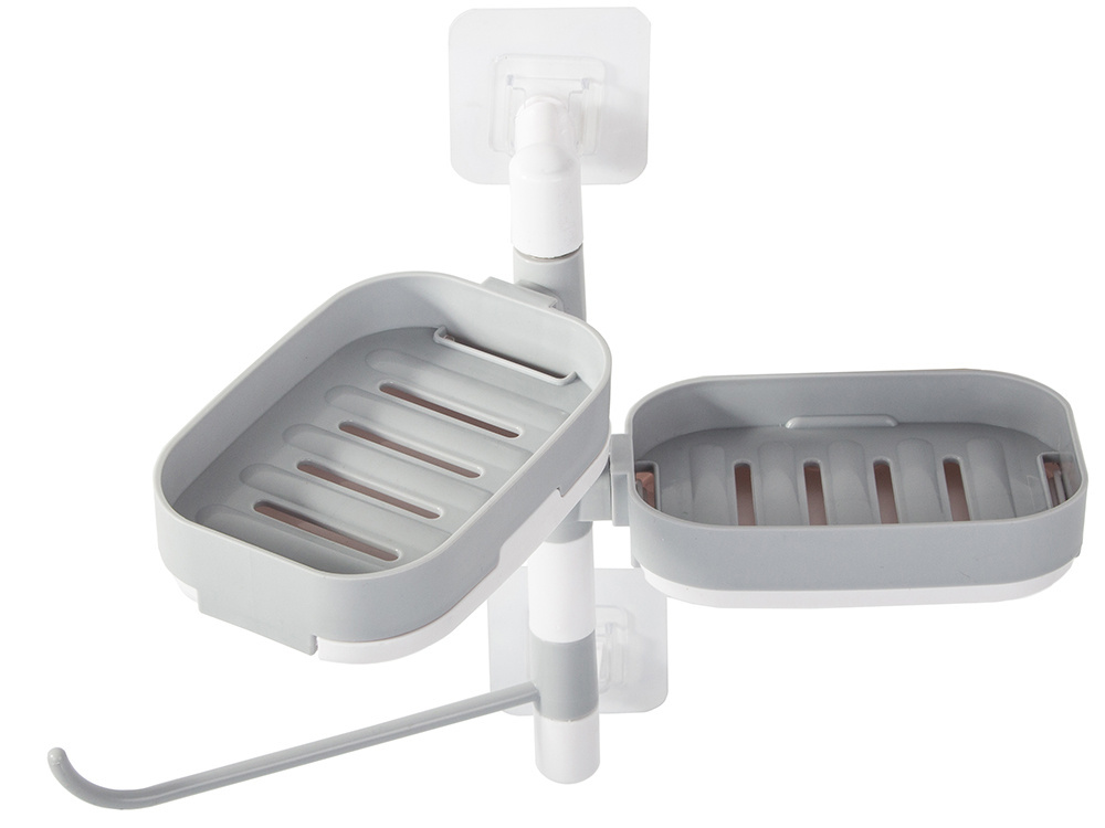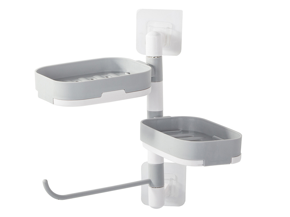 Mocowana do ściany lub innych powierzchni za pomocą mocnego przylepca. Posiada miejsce na dwa mydła i uchwyt na ręczniczek.