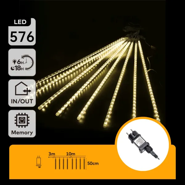 576 diod LED w 16 paskach po 50cm każdy - efekt spadających meteorytów