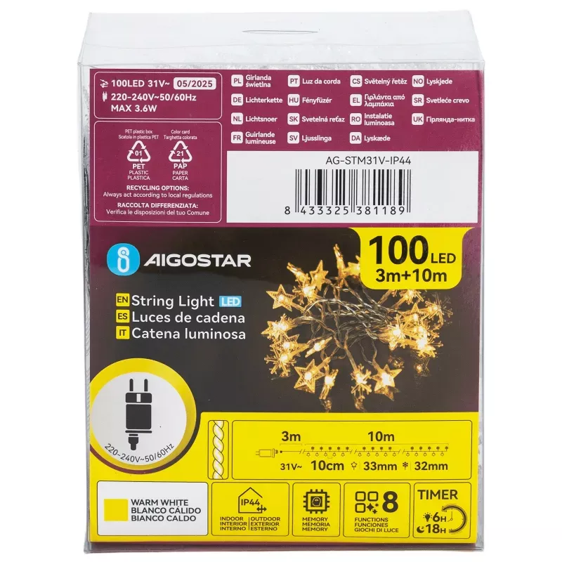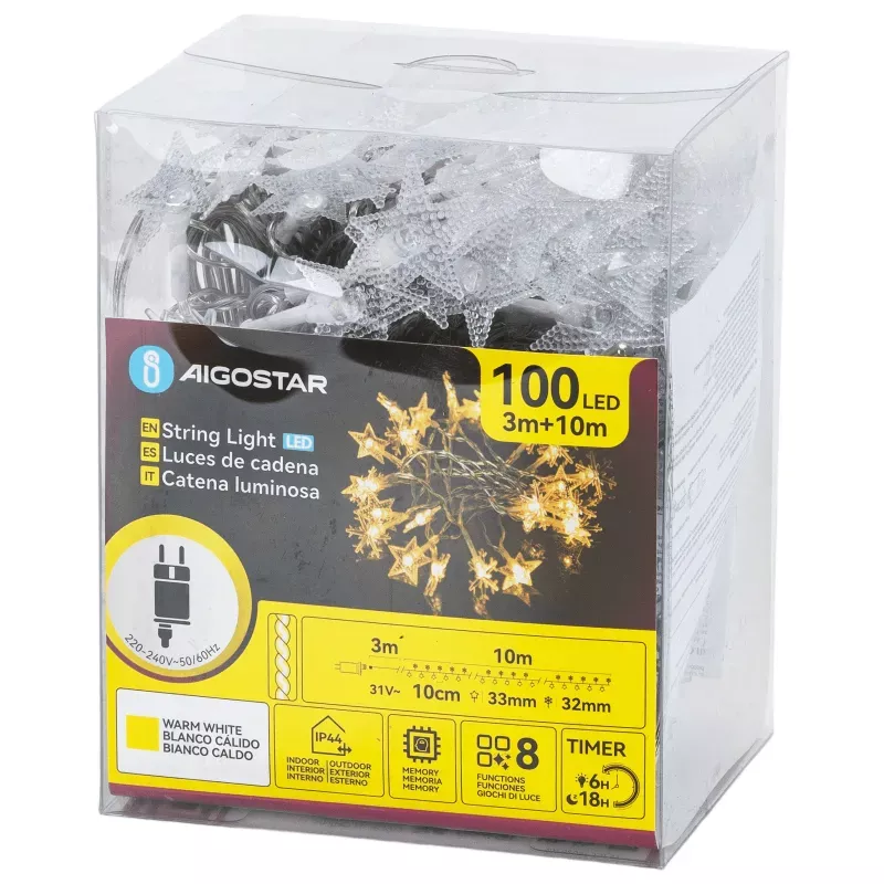 • Liczba diod: 100 LED • Długość: 10 metrów • Odległość między diodami: 10 cm • Materiał: przezroczyste tworzywo sztuczne • Stopień ochrony: IP44 • Zasilanie: niskonapięciowe