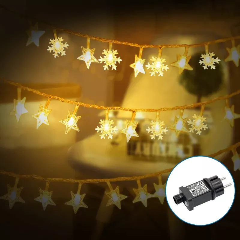 Stwórz magiczną atmosferę świąt dzięki eleganckim lampkom choinkowym w kształcie delikatnych płatków śniegu i gwiazdek. Te wyjątkowe ozdoby świetlne przekształcą Twój dom i ogród w prawdziwą zimową krainę czarów.