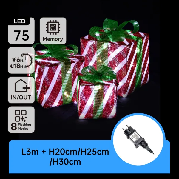 Przekształć swój dom w magiczną krainę świąt dzięki tym eleganckim podświetlanym dekoracjom świątecznym. Te stylowe łańcuchy świetlne w kształcie prezentów tworzą ciepłą, świąteczną atmosferę zarówno wewnątrz, jak i na zewnątrz Twojego domu.