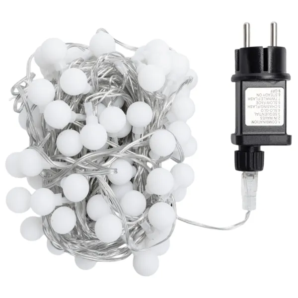 Energooszczędne oświetlenie dekoracyjne z 100 diodami LED w ciepłej bieli, idealne do tworzenia przytulnej atmosfery w domu i ogrodzie.