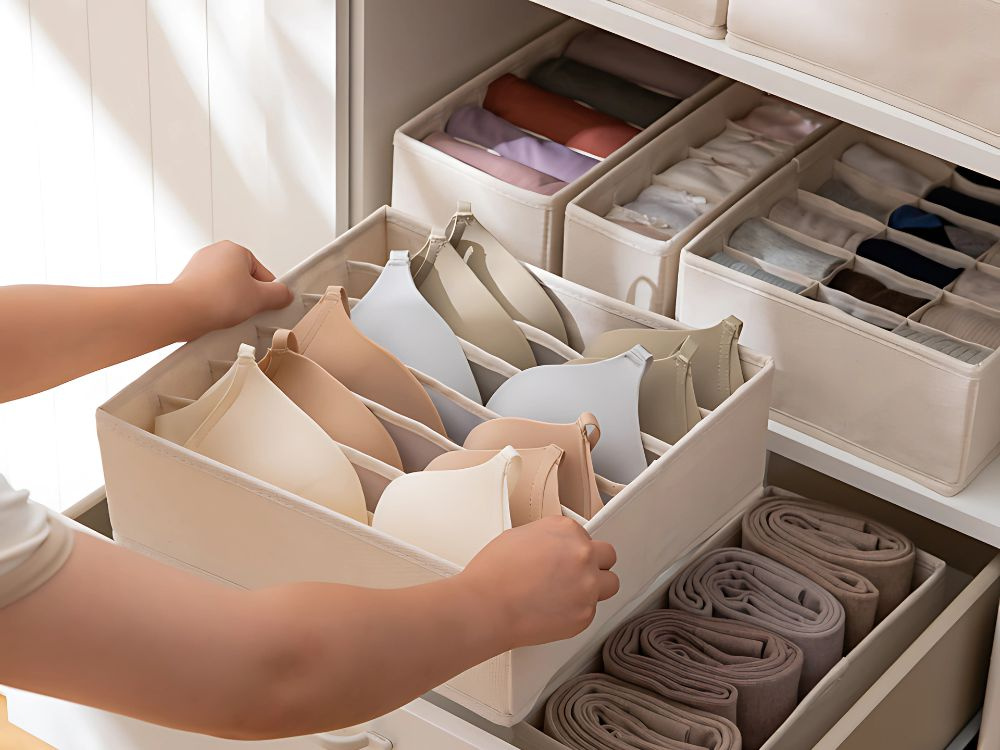 Organizer został zaprojektowany z myślą o efektywnym zarządzaniu przestrzenią. Sześć przegródek umożliwia segregację bielizny, co ułatwia szybkie odnalezienie potrzebnych rzeczy i utrzymanie porządku w garderobie. Idealnie sprawdzi się w szufladach, na półkach czy w szafach, zapewniając lepszą organizację i estetykę przechowywania.