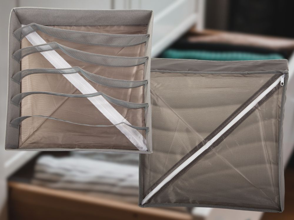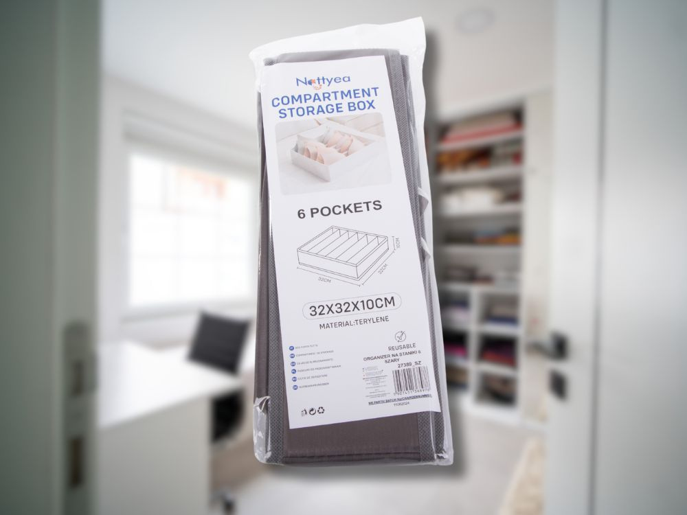 Organizer został zaprojektowany z myślą o efektywnym zarządzaniu przestrzenią. Sześć przegródek umożliwia segregację bielizny, co ułatwia szybkie odnalezienie potrzebnych rzeczy i utrzymanie porządku w garderobie. Idealnie sprawdzi się w szufladach, na półkach czy w szafach, zapewniając lepszą organizację i estetykę przechowywania.