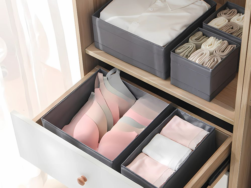 Organizer został zaprojektowany z myślą o efektywnym zarządzaniu miejscem w szafie. Umożliwia segregację różnych elementów garderoby, co ułatwia szybkie odnalezienie potrzebnych rzeczy i utrzymanie porządku. Idealnie sprawdzi się w szufladach, na półkach czy w garderobie, zapewniając lepszą organizację i estetykę przechowywania.