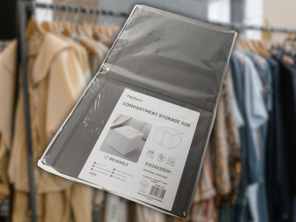 Nowoczesny, minimalistyczny wygląd w kolorze szarym sprawia, że pudełko doskonale komponuje się z różnymi stylami wnętrz. Idealne do umieszczenia w szafie, garderobie, na półce czy pod łóżkiem.