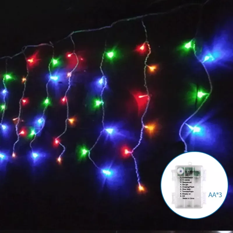 Lampki choinkowe sople przepływ 200LED na 3 baterie AA Multikolor 10M