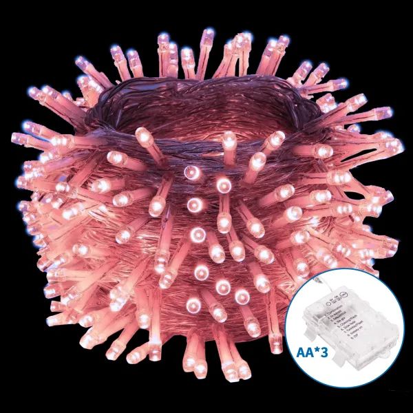 Lampki choinkowe na 3 baterie AA różowe 100LED 10M