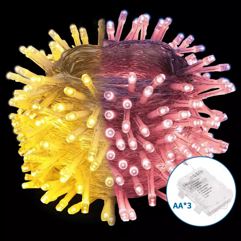 Lampki choinkowe ozdobne na 3 baterie AA różowa z ciepłym 50LED 5M