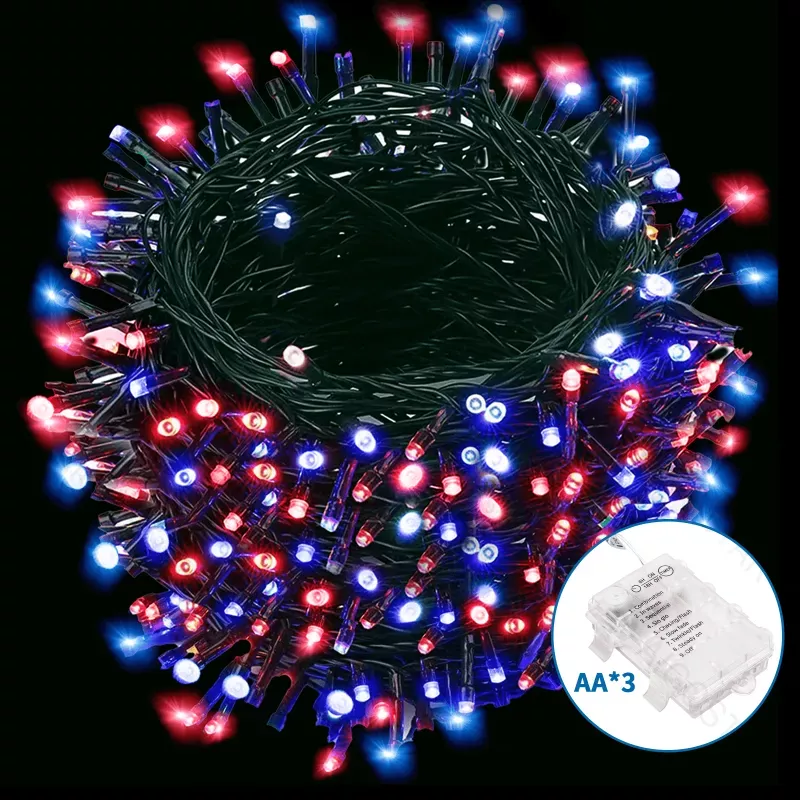 Lampki choinkowe na 3 baterie AA czerwono-niebieskie 200led 10m
