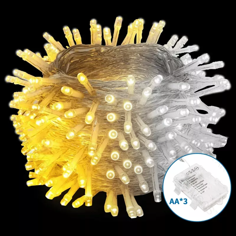 Lampki choinkowe na 3 baterie AA zimne z ciepłym 100Led 10M