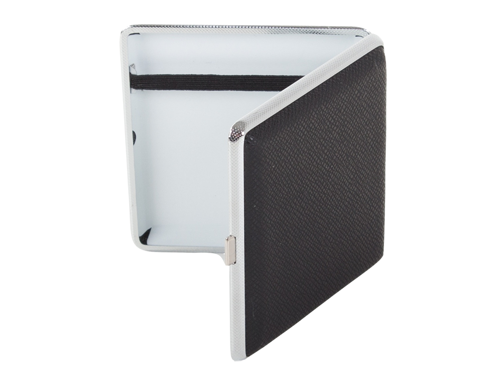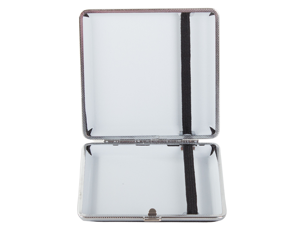 Papierośnica pomieści aż 20 papierosów, dzięki gumce znajdującej się wewnątrz opakowania papierosy idealnie się układają. Jest zamykana na metalowy zatrzask. Sprawdzi się doskonale dla palaczy produkujących papierosy na własny użytek.