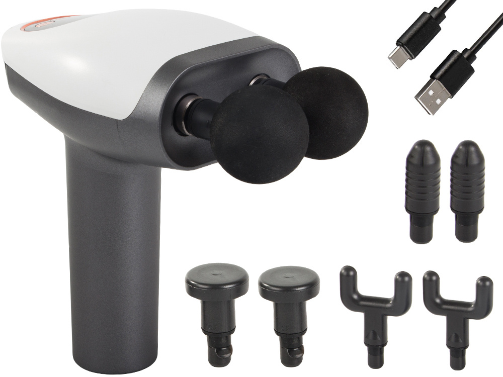 Profesjonalne urządzenie do masażu mięśni, pleców, nóg i całego ciała!Pistolet do masażu to idealne rozwiązanie dla osób aktywnych fizycznie, sportowców, a także wszystkich, którzy odczuwają napięcie mięśniowe i zmęczenie. Dzięki wielofunkcyjnej konstrukcji i 8 wymiennym końcówkom, pozwala na dopasowanie masażu do różnych partii ciała.