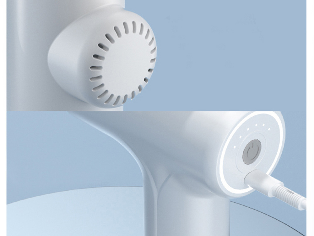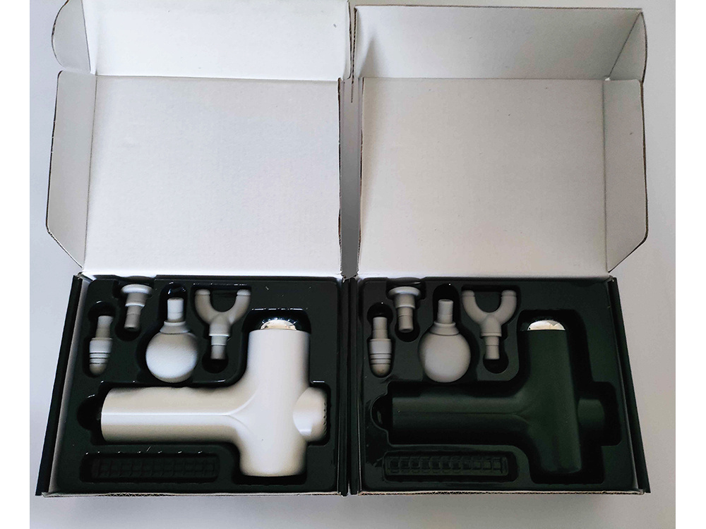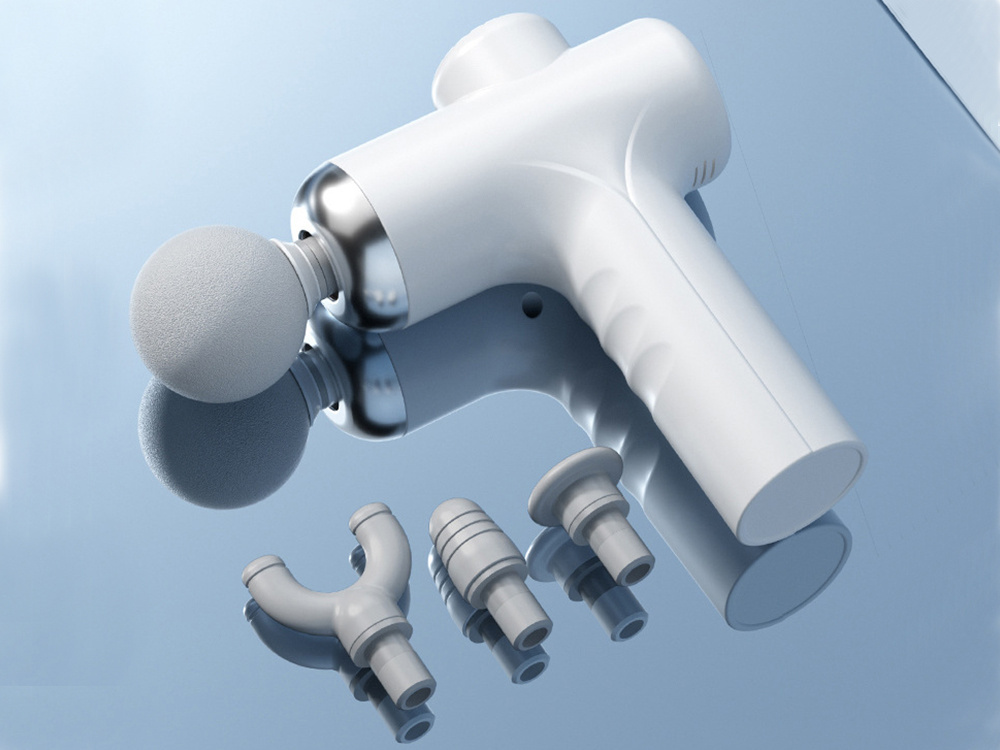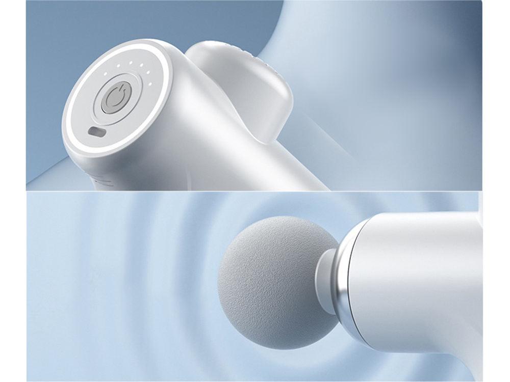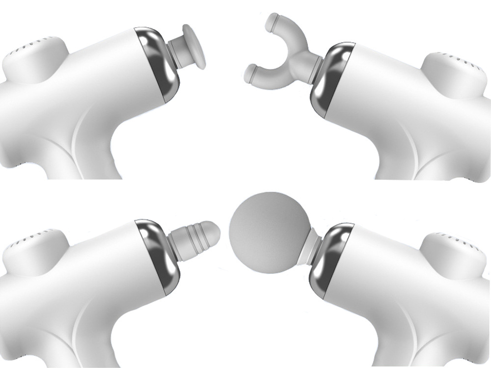 Masażer zaprojektowany został w ergonomicznej formie w kształcie pistoletu dzięki temu idealnie dopasowuje się do dłoni. Zawiera 4 różne końcówki, każda przeznaczona dla innej partii mięśni.