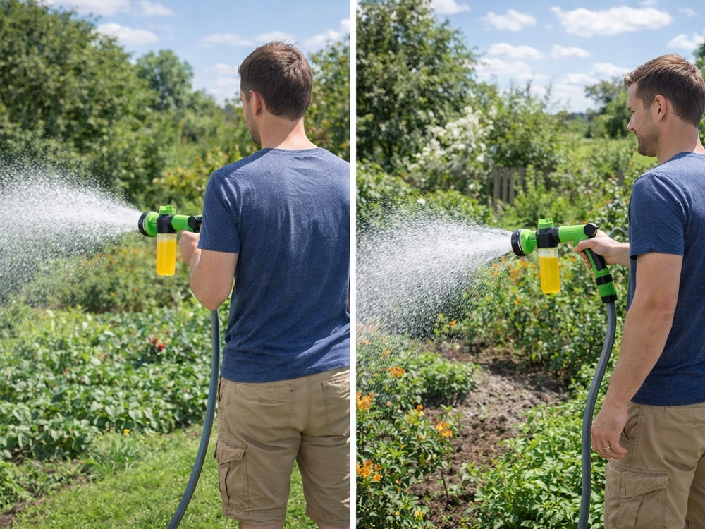 To praktyczne rozwiązanie łączy funkcję zraszacza i dozownika płynu, co pozwala zaoszczędzić czas i zwiększyć efektywność pracy. Regulacja ciśnienia oraz dozowania środka daje pełną kontrolę nad działaniem urządzenia, a blokada spustu znacząco poprawia komfort użytkowania. To idealny wybór zarówno do ogrodu, jak i prac porządkowych wokół domu.