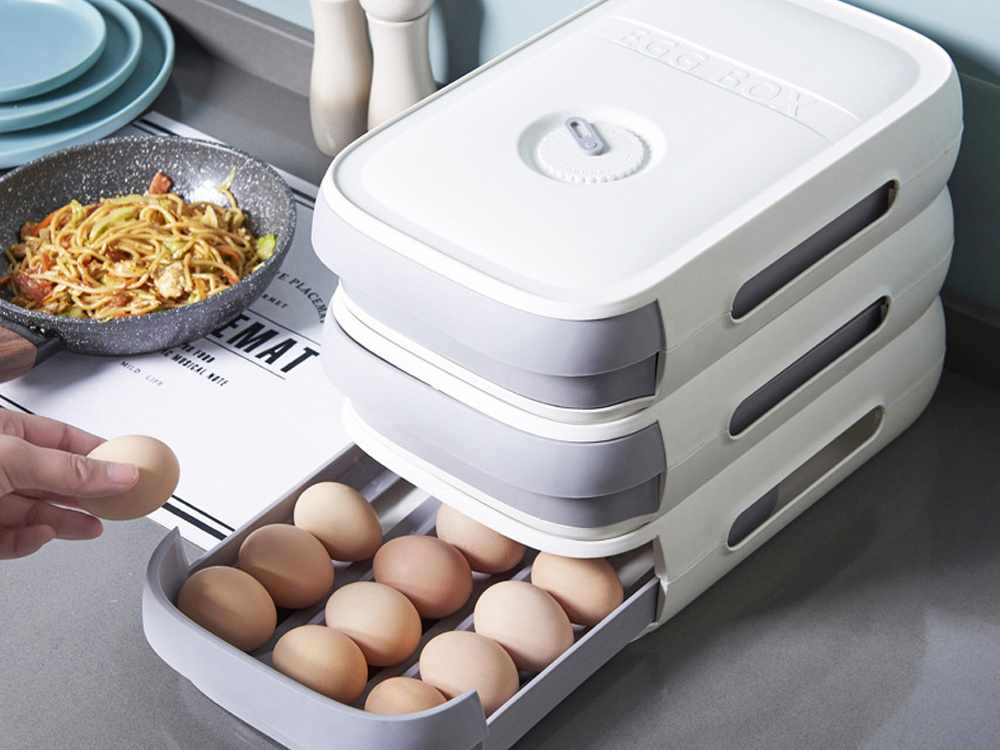 Doskonały sposób na uporządkowanie jaj w każdej lodówce. Dzięki szufladzie masz zawsze wygodny dostęp do każdego jajka bez konieczności wyjmowania całego pojemnika.