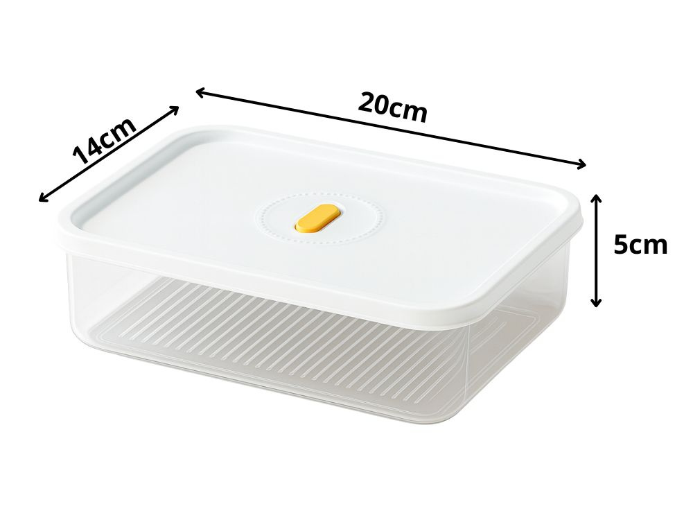 Pojemnik o pojemności 1,4L to idealne rozwiązanie do przechowywania świeżych produktów, przekąsek, owoców, warzyw czy wędlin. Dzięki przezroczystym ściankom szybko sprawdzisz zawartość, a szczelna pokrywka zabezpieczy żywność przed wysychaniem i przenikaniem zapachów. Niewielki rozmiar sprawia, że pojemnik zmieści się w każdej lodówce, szufladzie lub torbie.