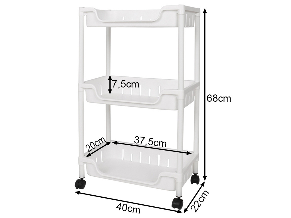 Mobilny regał z trzema przestronnymi półkami to praktyczne i uniwersalne rozwiązanie, które znajdzie zastosowanie w kuchni, łazience, biurze czy salonie. Dzięki kółkom regał można łatwo przemieszczać, co czyni go niezwykle wygodnym w codziennym użytkowaniu. Dodatkowo wyposażony w dwa haczyki, które zwiększają funkcjonalność, pozwalając na zawieszenie drobnych przedmiotów, takich jak ściereczki, torby czy akcesoria kuchenne.