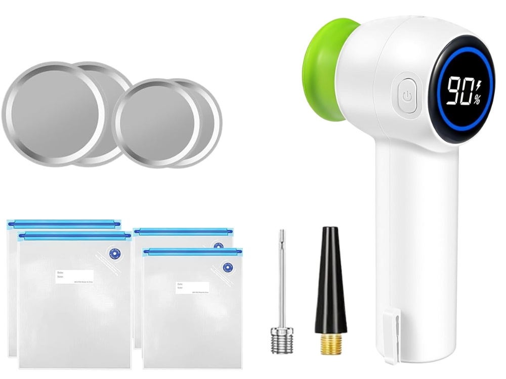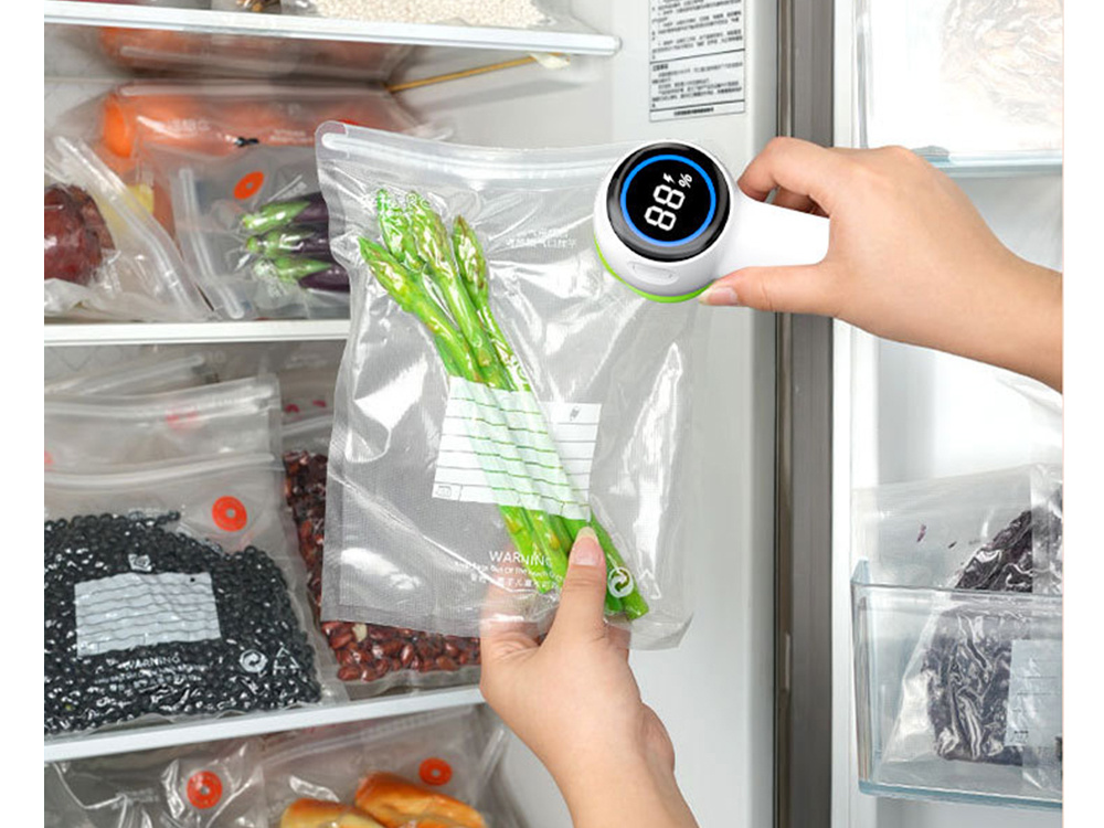 Šis kompaktiškas, elektrinis vakuuminis pakavimo įrenginys puikiai tinka bet kuriai virtuvei ar namams. Jis leidžia greitai ir efektyviai pašalinti orą iš daugkartinio naudojimo maišelių, stiklainių, vakuuminių indų, taip pat pripūsti kamuolius ir balionus. Dėka elektroninio LED ekrano, galite visiškai kontroliuoti veikimo būseną ir vakuumo lygį. Įmontuota 1200 mAh baterija užtikrina visišką mobilumą – nereikia prijungti prietaiso prie elektros lizdo!