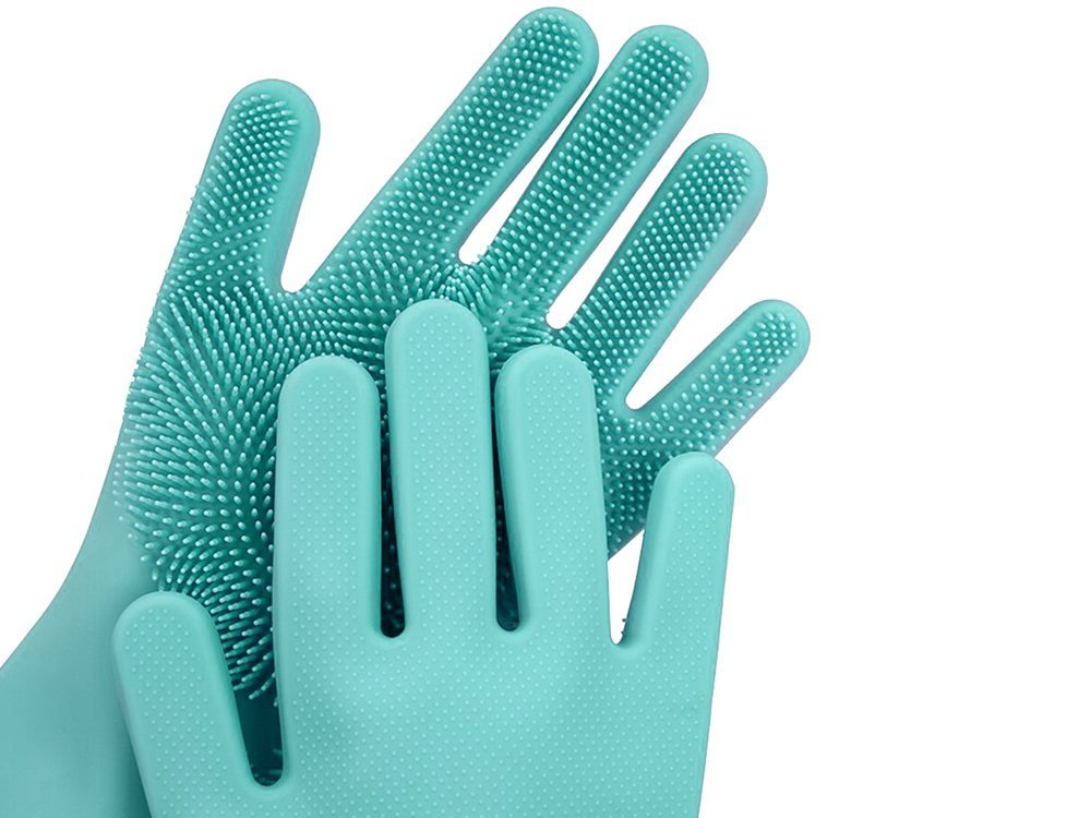Silikonowe rękawice kuchenne z wypustkami z powodzeniem zastąpią zmywaki i szczotki do czyszczenia.