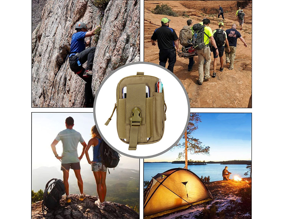 Saszetka taktyczna w militarnym motywie, przypadnie do gustu zarówno miłośnikom wspinaczki górskiej, jak i militariów.