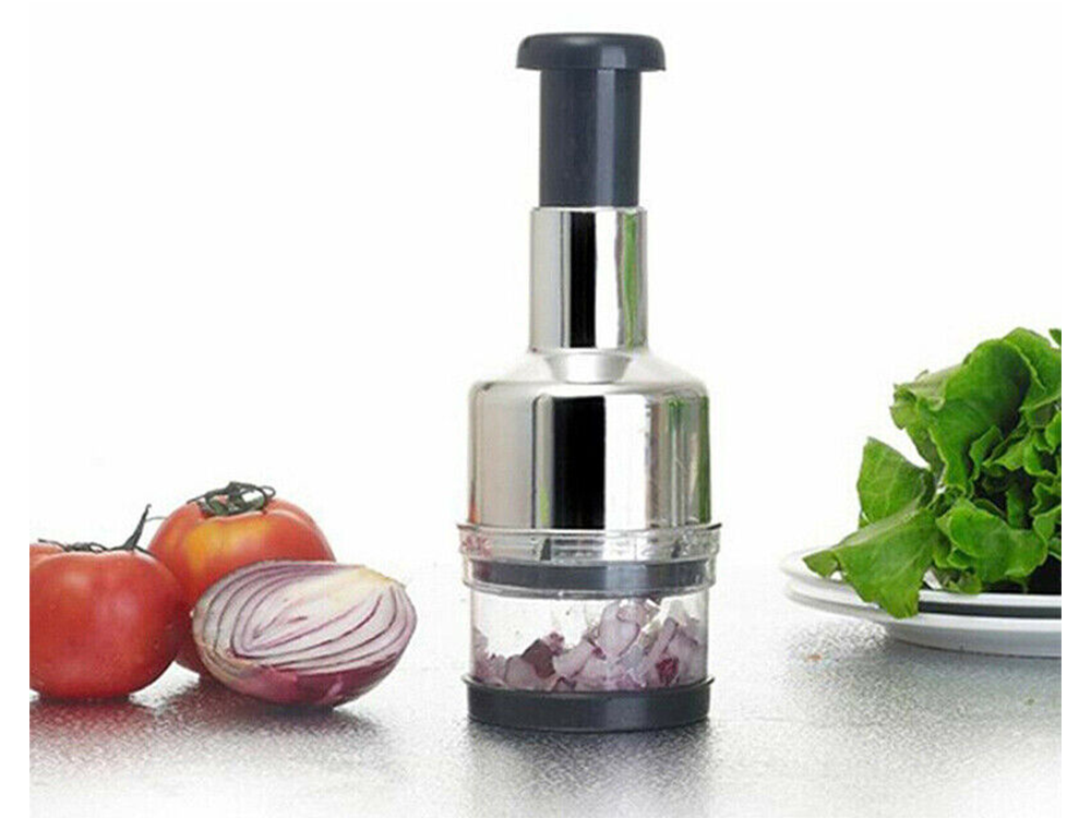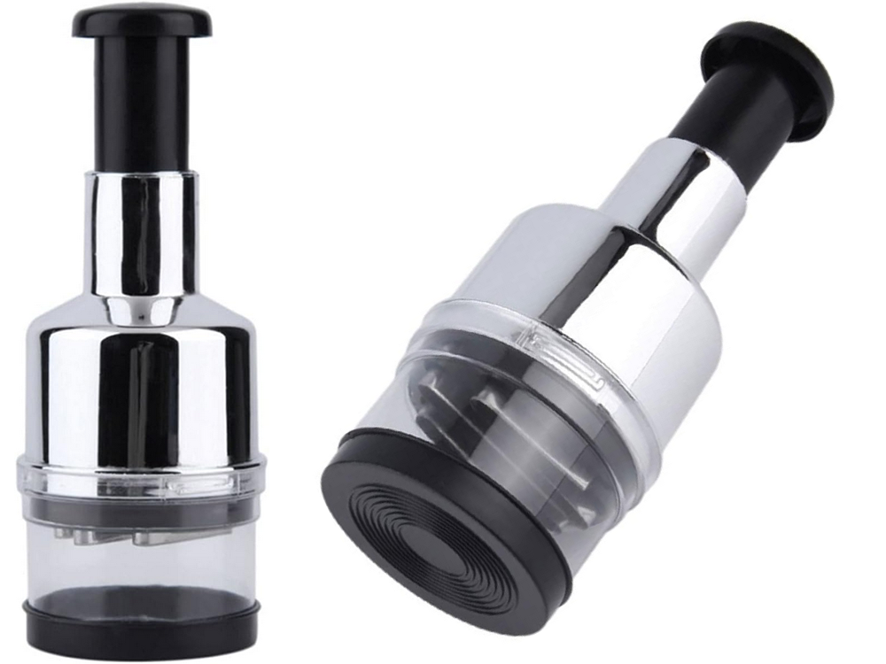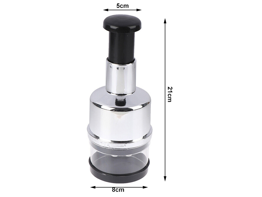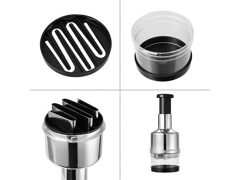 Posiada 6 ostrych noży, które posiekają większość produktów żywieniowych . Po każdym wciśnięciu, ostrza opadają na dół dokładnie szatkując zawartość pojemniczka.