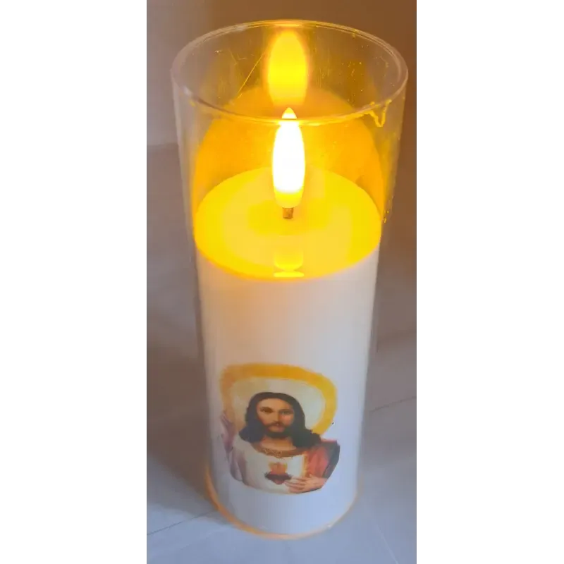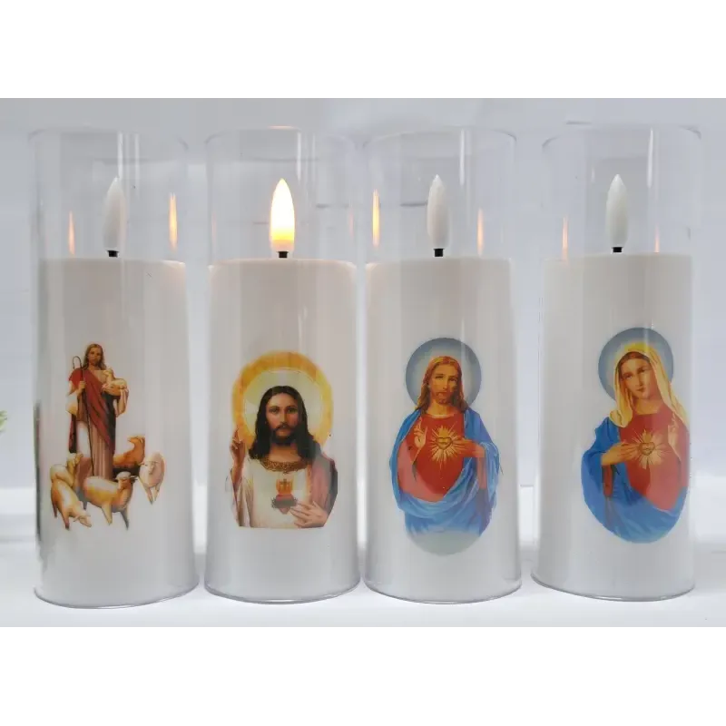 Świeca LED z Świętym Obrazkiem - Realistyczny Efekt Płomienia dla Grobów