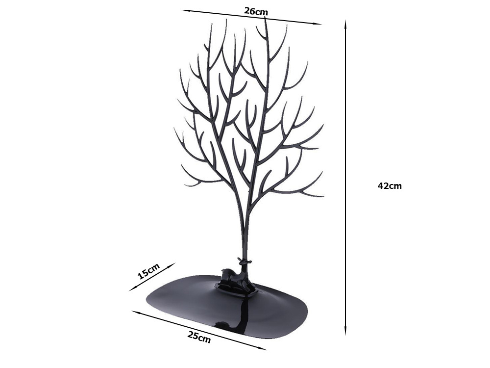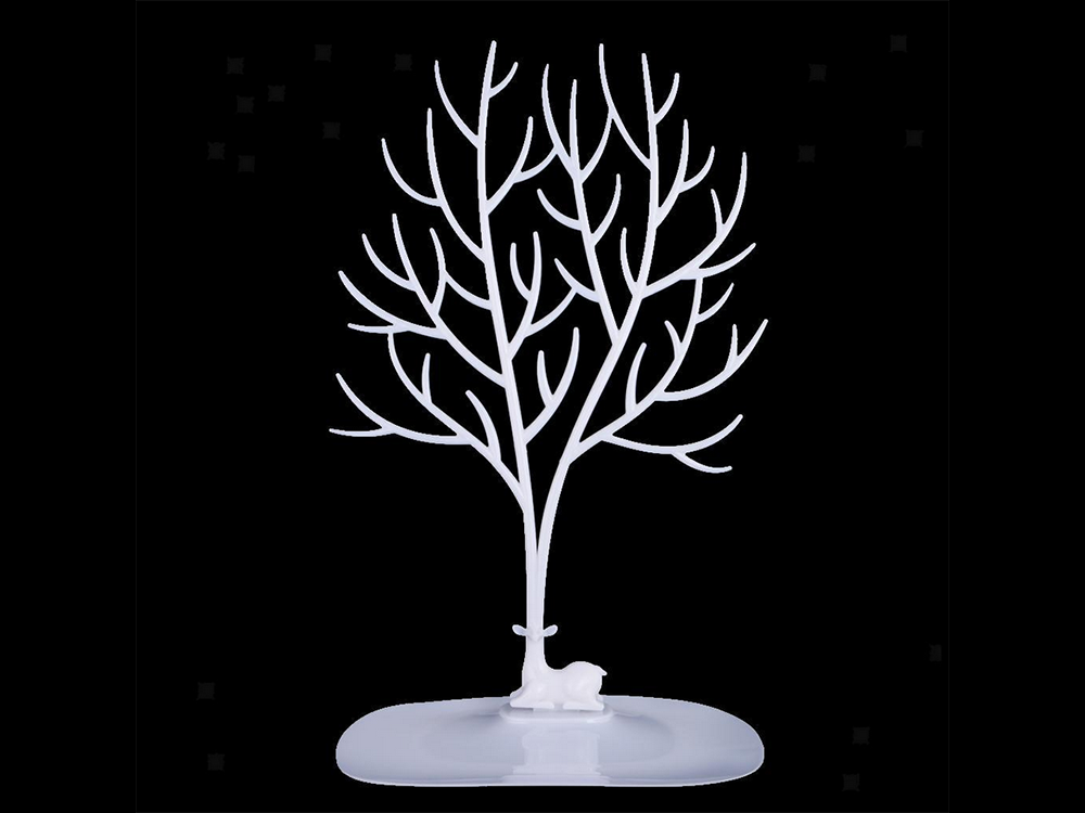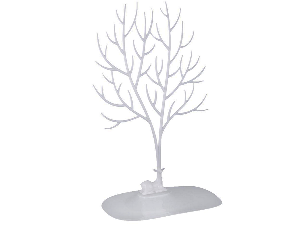 Stojak - drzewo wyposażony jest w pojemną podstawę na której możemy przechować drobne kosmetyki, ozdoby do włosów i inne drobne gadżety.